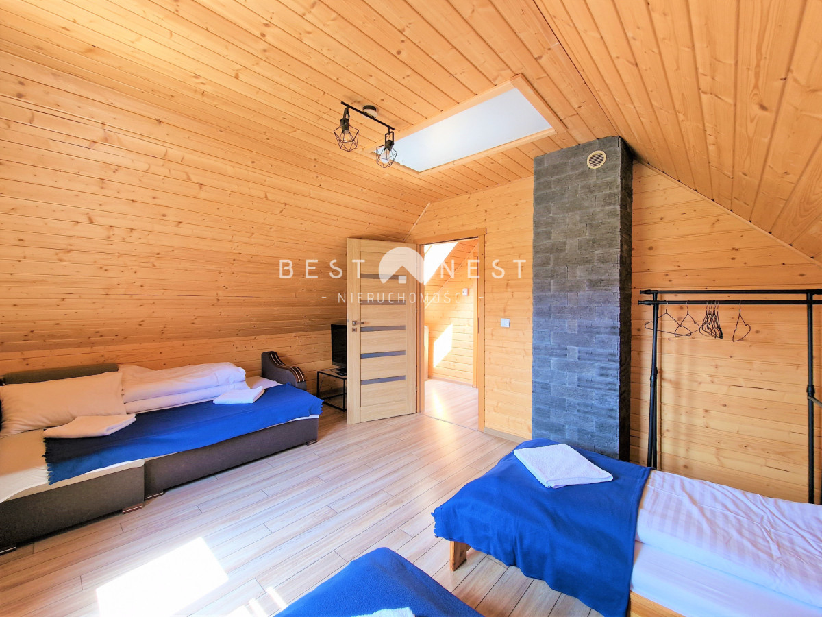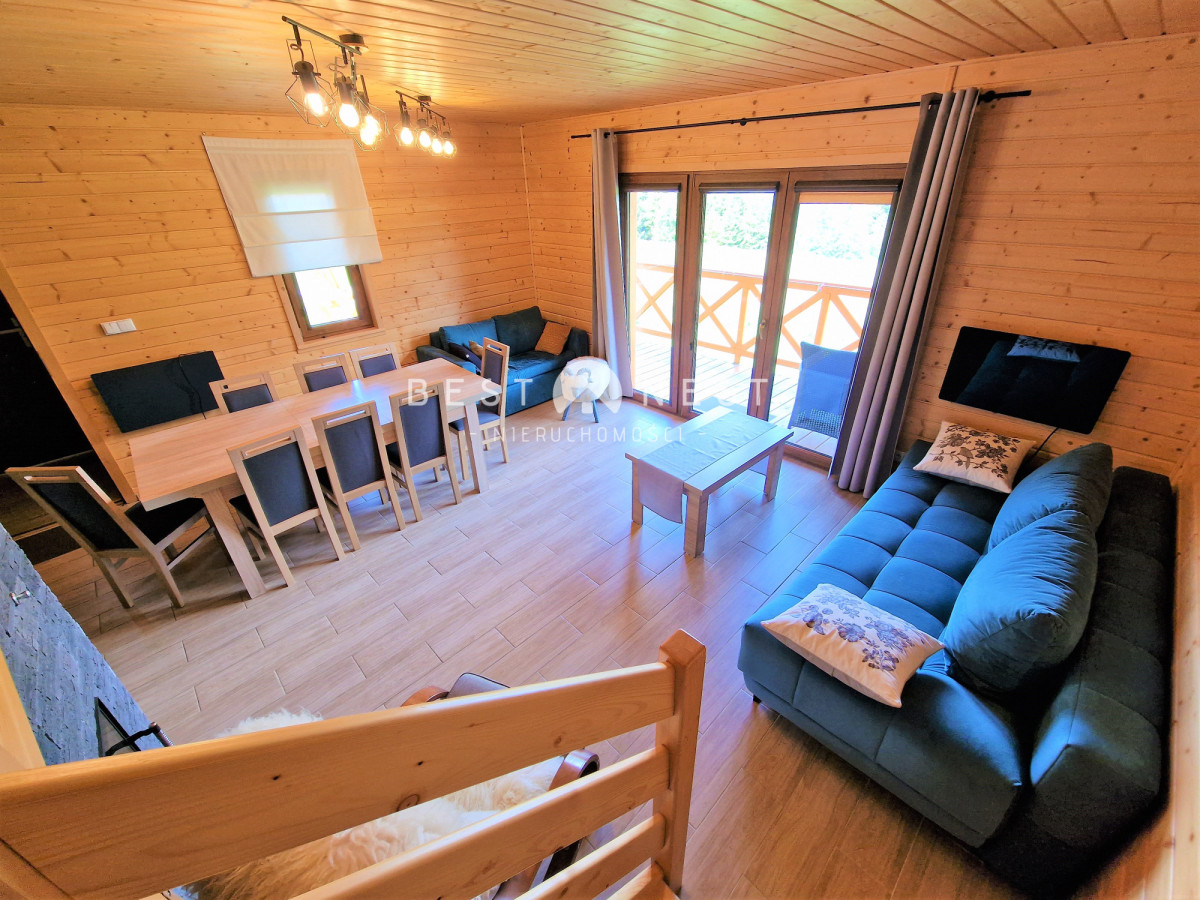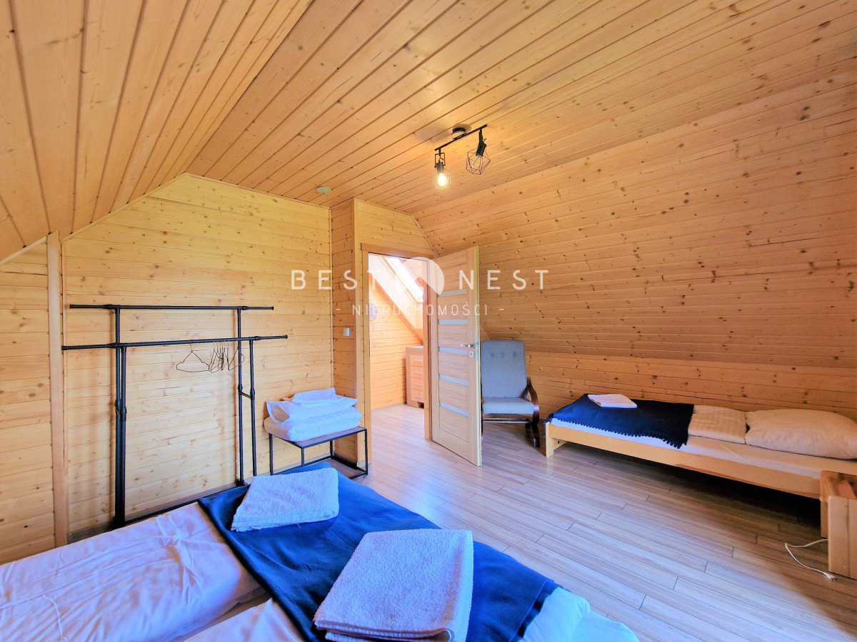 Mamy przyjemność zaprezentować piętrowy, wolnostojący dom z drewna o powierzchni użytkowej ok 73 m2 w miejscowości Glinka, położony na pięknej, dużej, widokowej działce o powierzchni 2136m2 na szczycie góry Smereków Wielki. Na ogrodzie mamy dostęp do jacuzzi, huśtawki oraz paleniska. Ze względu na powierzchnię działki, istnieje możliwość wybudowania dodatkowych obiektów. W sierpniu 2023 roku, została wyszlifowana i zaimpregnowana elewacja całego budynku, oraz wymieniona kabina prysznicowa.
