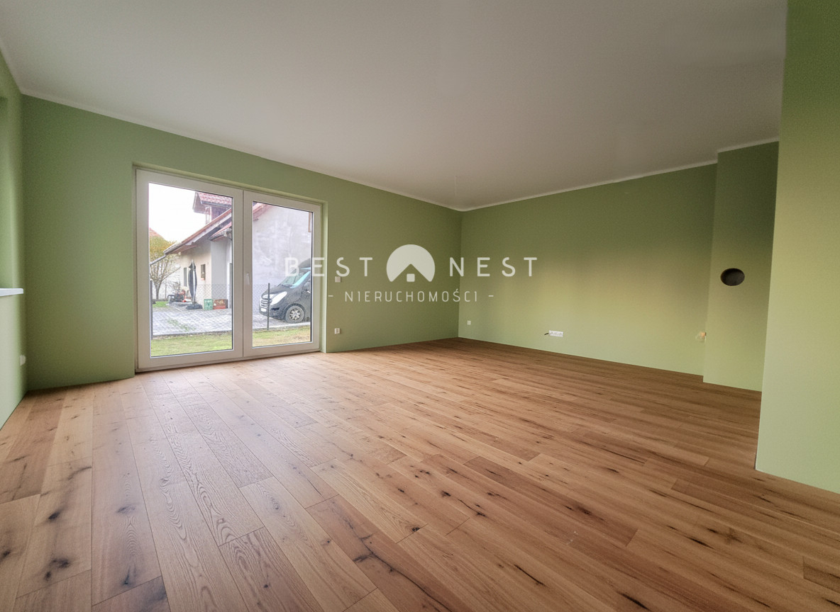 - Przestronny salon z wyjściem na taras i miejscem na kominek