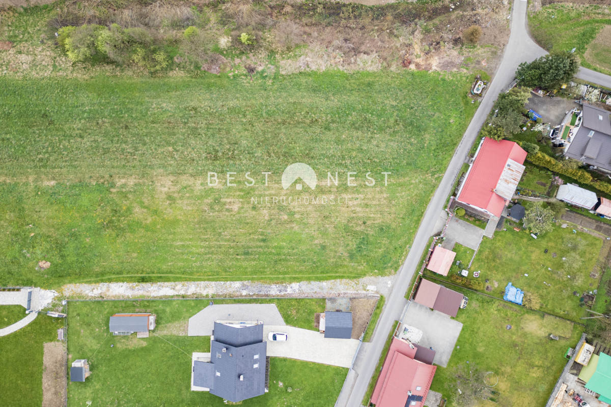 Działka znajduje się w spokojnej części Łodygowic, otoczonej nową zabudową jednorodzinną, w bliskiej odległości terenów zielonych.
