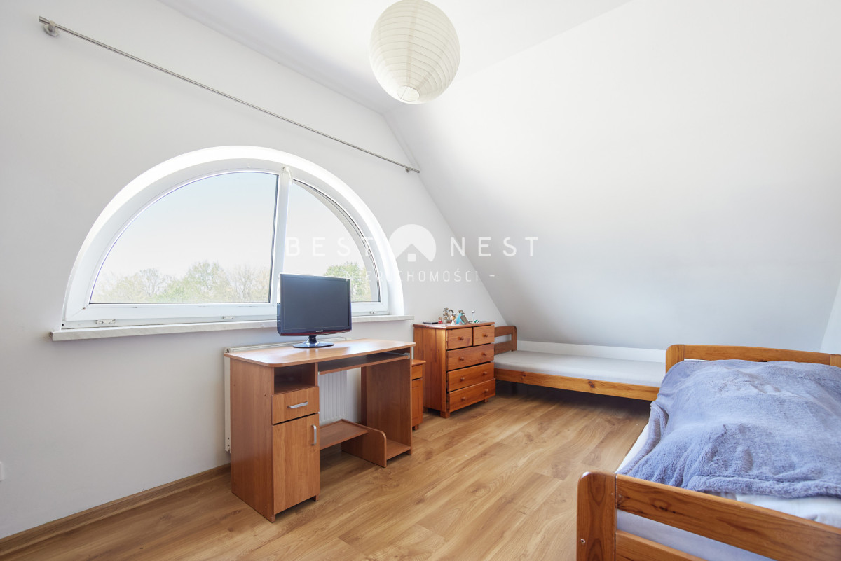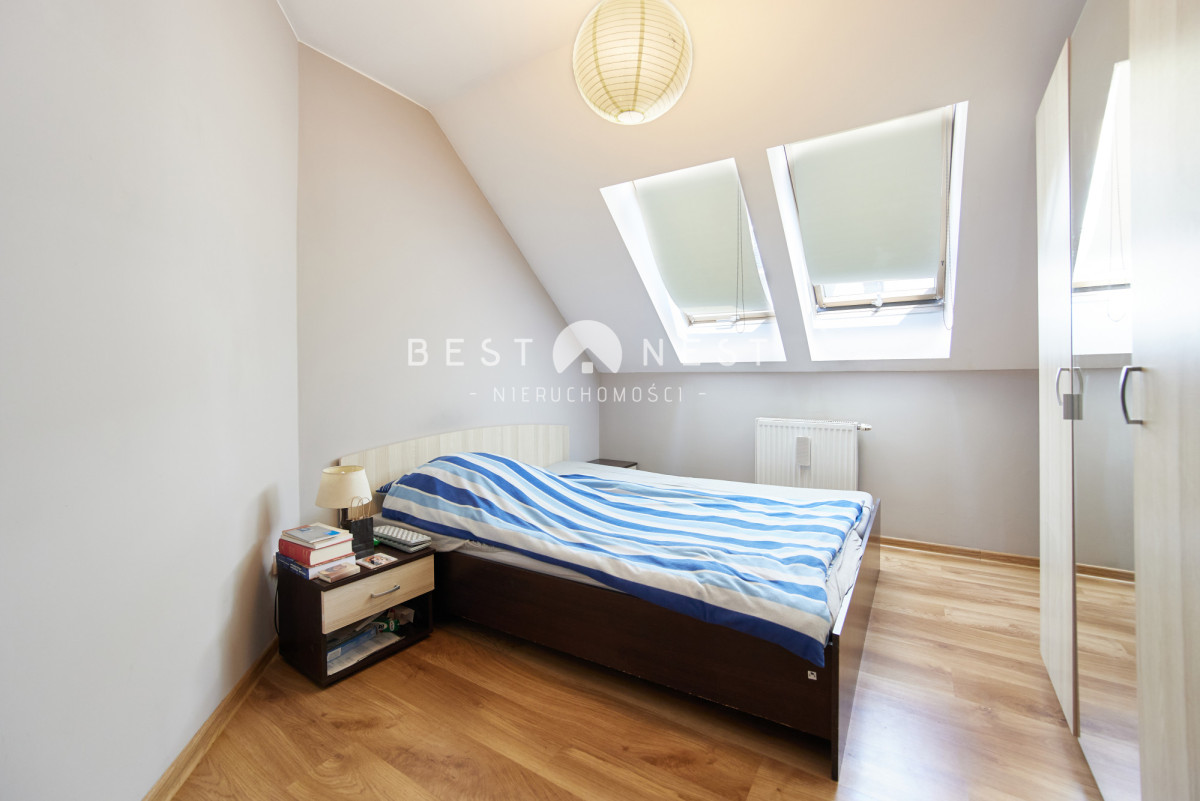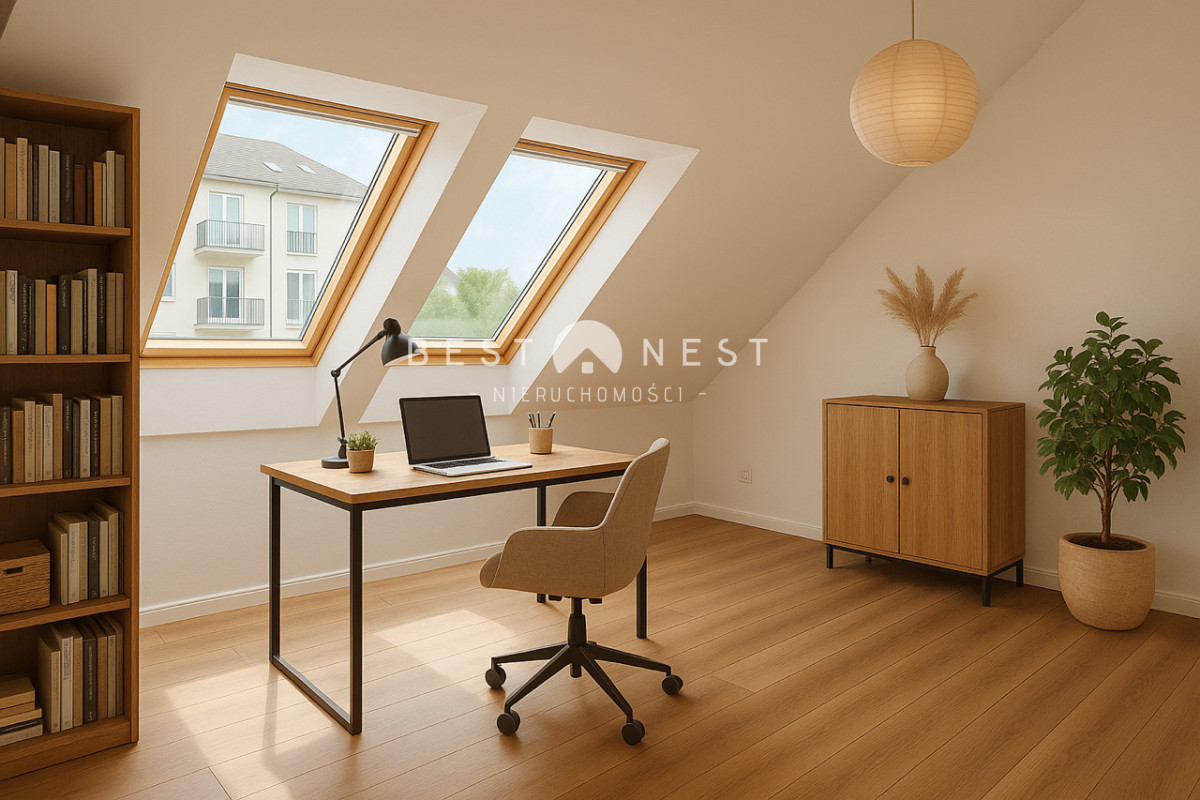 • Sypialnia + dodatkowe pokoje na antresoli - idealne na biuro, pokój dziecka lub przestrzeń relaksu