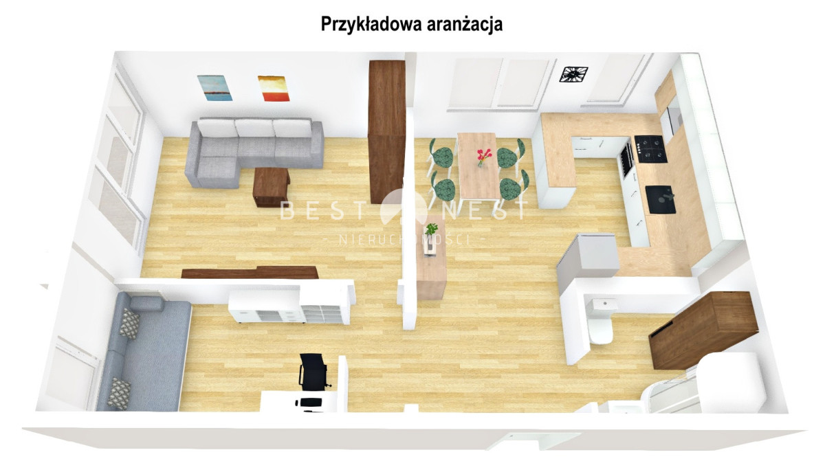 - Funkcjonalny układ pomieszczeń - trzy ustawne pokoje, otwarta kuchnia i przestronny przedpokój. Mieszkanie zapewnia komfort codziennego życia, nadaje się zarówno dla rodziny, jak i dla najemców.