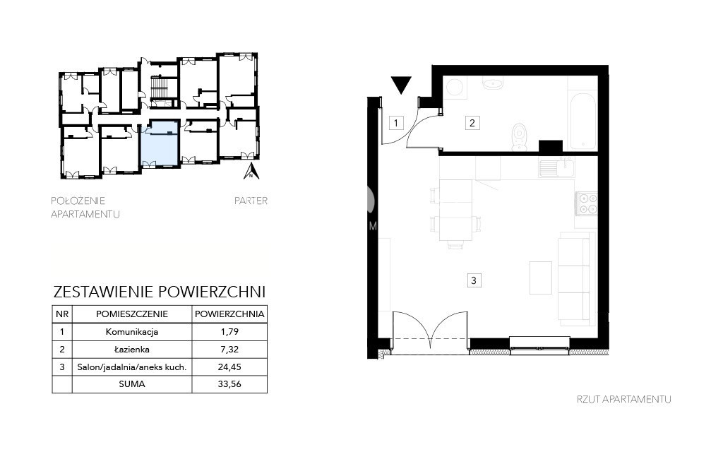 Przedmiotem oferty jest jednopokojowe mieszkanie w stanie deweloperskim.