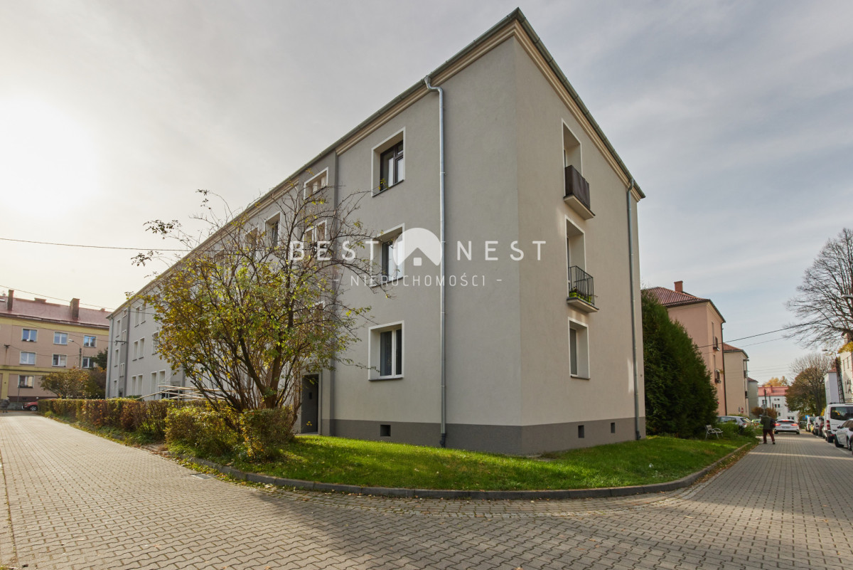 Mieszkanie znajduje się w centrum Bielska-Białej, na osiedlu Grunwaldzkim, wnętrze osiedla jest staranie zadbane zapewniając spokój i ciszę, stwarzając tym samym przyjemne warunki do codziennego życia. Mieszkanie jest doskonale skomunikowane z centrum miasta, gdzie znajdują się sklepy, restauracje, szkoły, a także inne punkty usługowe. Dodatkowo, łatwy dostęp do komunikacji miejskiej sprawia, że przemieszczanie się po mieście jest szybkie i wygodne.