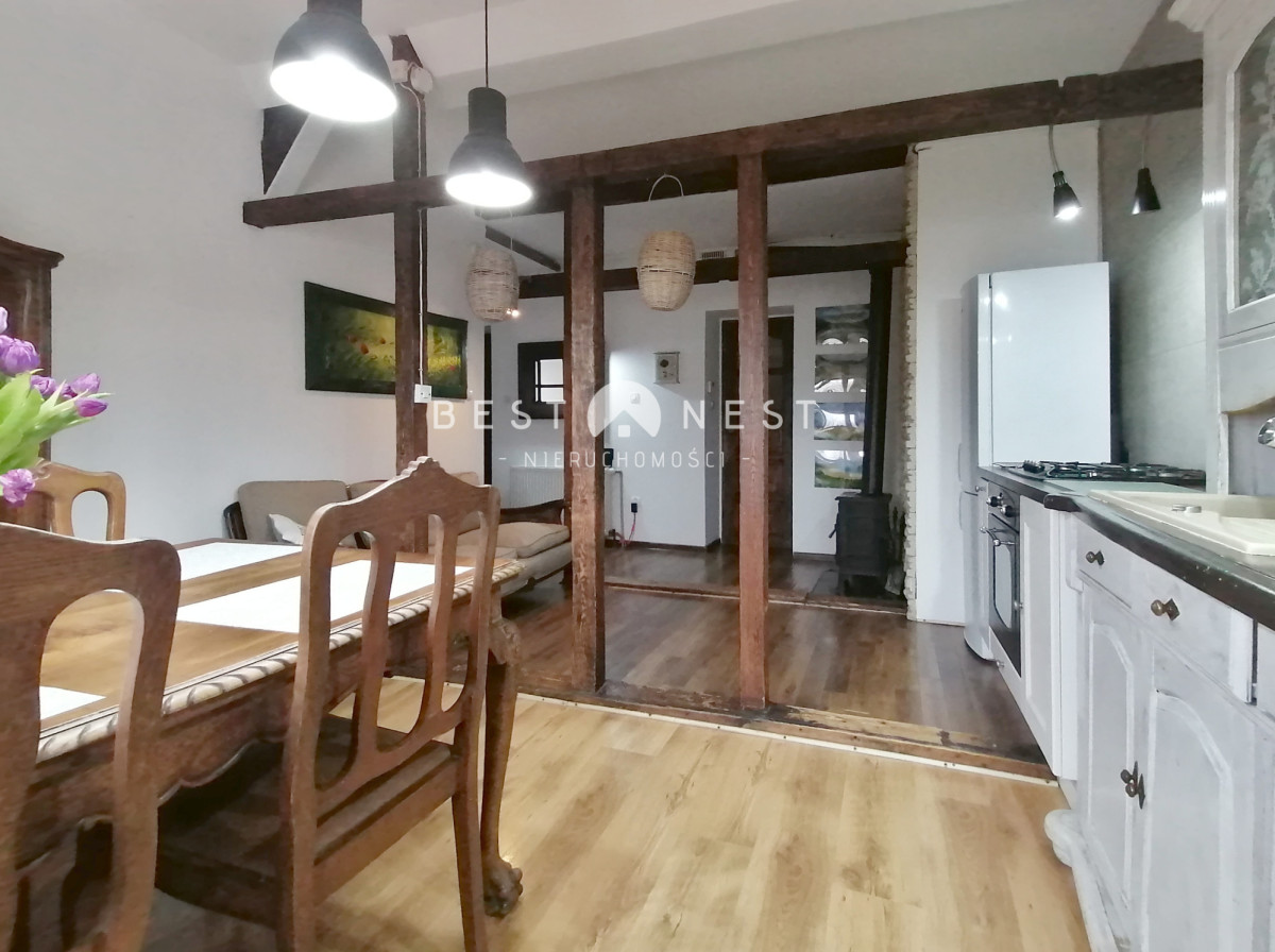 Nieruchomość ogrzewana za pomocą pieca gazowego znajdującego się w łazience. Kuchnia z AGD.