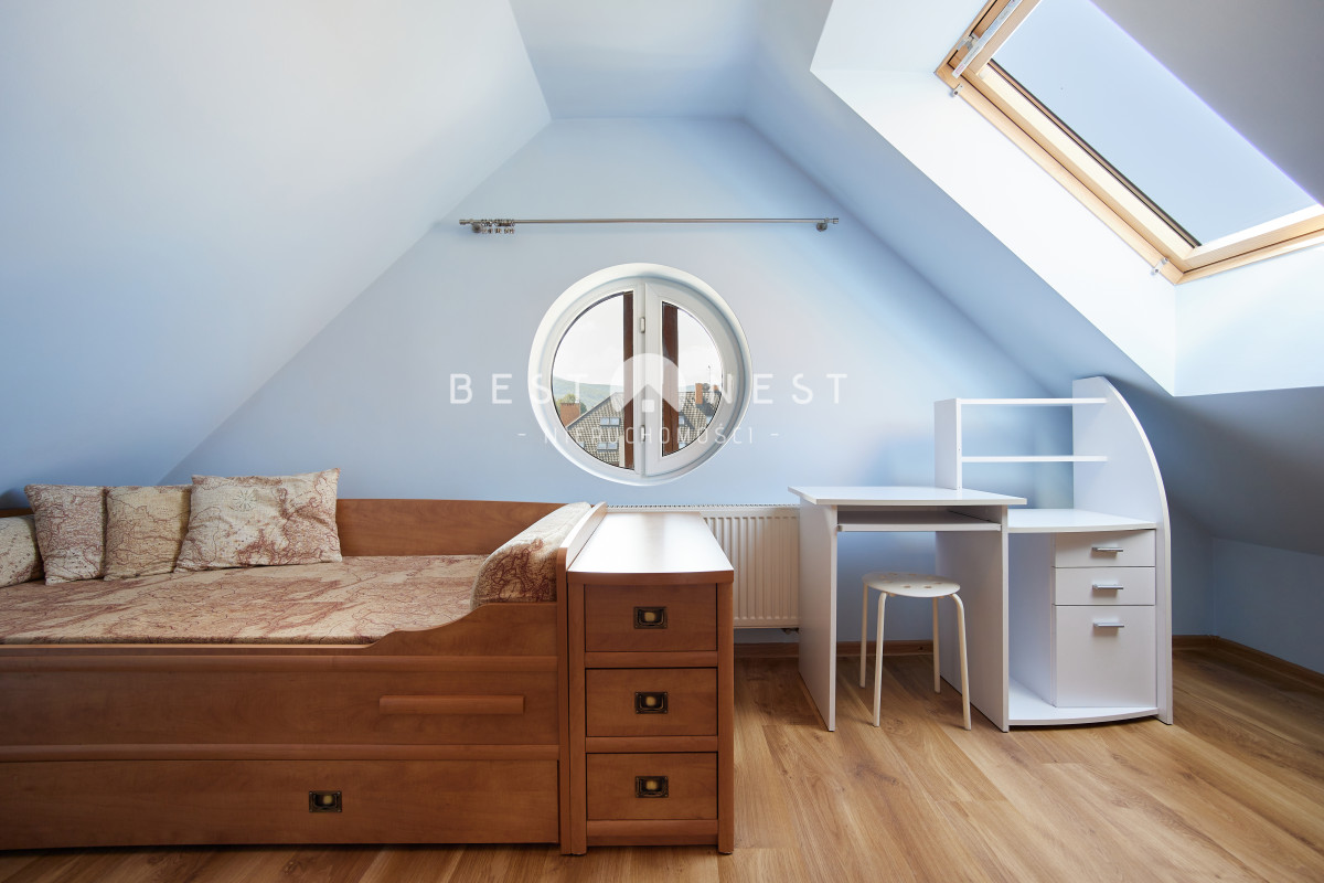 - Spokojna i zielona okolica z bezpośrednim dostępem do terenów spacerowych i rowerowych (lasy, góry, ścieżki rekreacyjne)