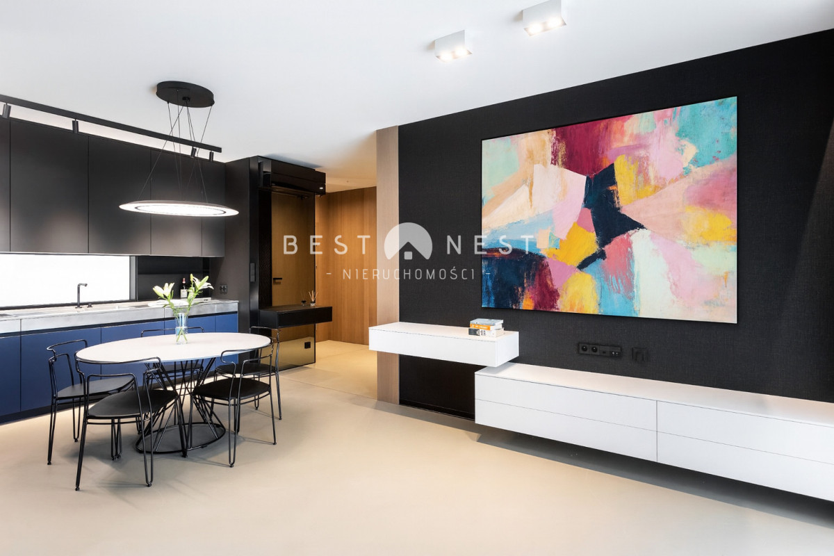 Wykończenie apartamentu to połączenie subtelnej estetyki z nowoczesną technologią. Zastosowane rozwiązania i materiały sprawiają, że wnętrze jest wygodne i ponadczasowe.