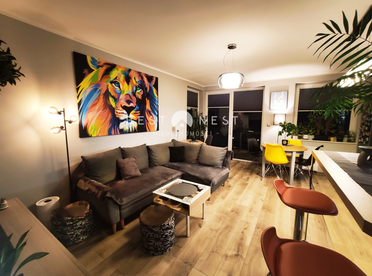 Wyjątkowym atutem tego mieszkania jest przestronny taras o powierzchni 12 m², który w cieplejsze dni jest dodatkowym pomieszczeniem na relaks.