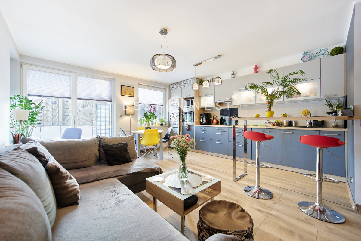 - W mieszkaniu zainstalowana została klimatyzacja dwufunkcyjna, co zapewnia komfort przez cały rok