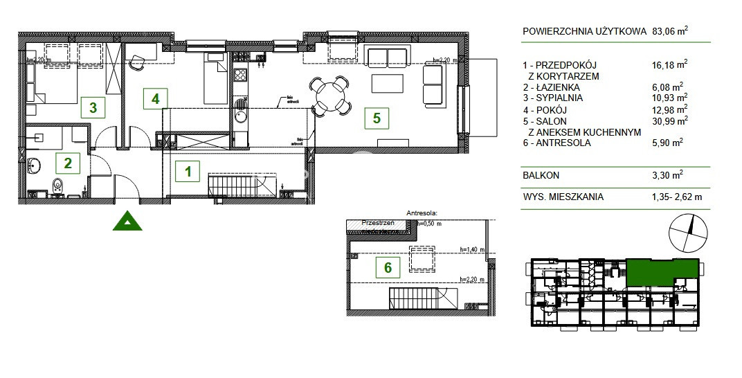 - Antresola (5,90 m²) - Twój dodatkowy azyl na biuro lub sypialnię.