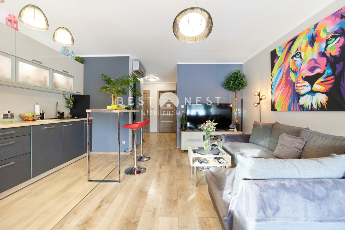 Nowoczesny i w pełni wykończony apartament o powierzchni 53,43 m², położony jest na drugim piętrze w 3-piętrowym budynku z windą.