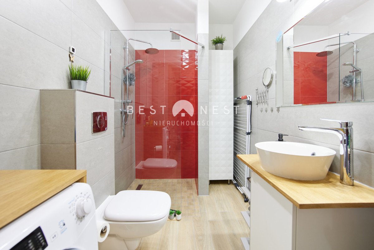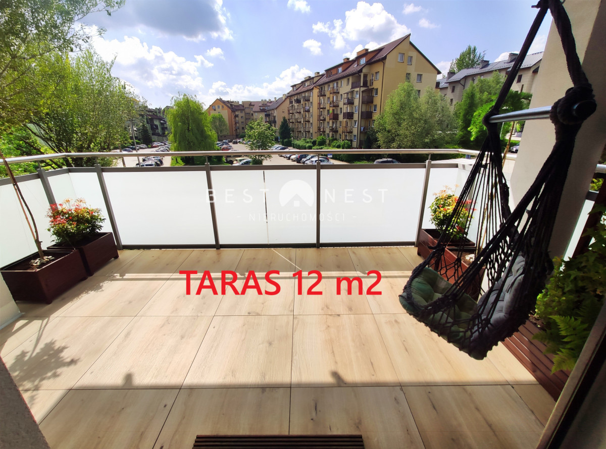 Wyjątkowym atutem tego mieszkania jest przestronny, pięknie urządzony taras o powierzchni 12 m², który w cieplejsze dni jest dodatkowym pomieszczeniem na relaks.