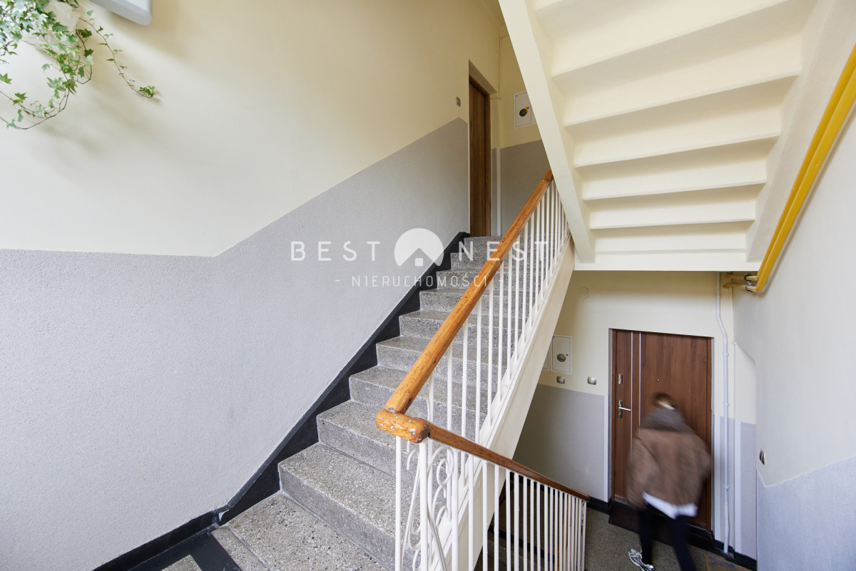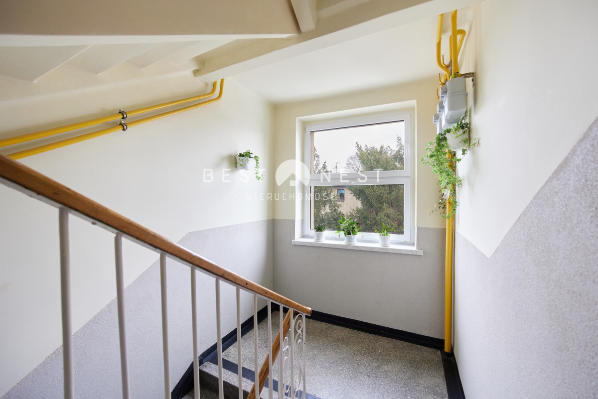 Mieszkanie znajduje się w zadbanym budynku z lat 60., znanym z solidnej konstrukcji. Część miasta, otoczona zielenią i jednocześnie świetnie skomunikowana - blisko przystanków komunikacji miejskiej, sklepów oraz punktów usługowych. W sąsiedztwie znajdują się również szkoły, przedszkola i tereny rekreacyjne.