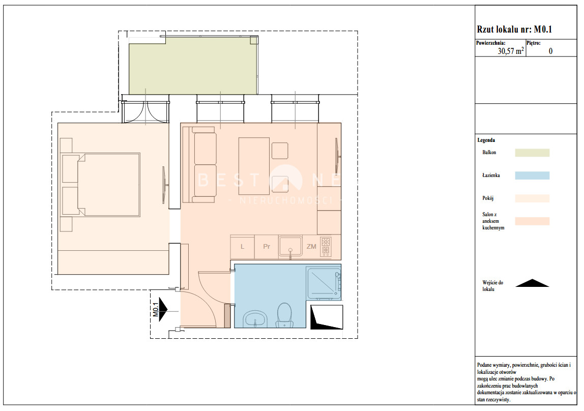 Przedmiotem oferty jest apartament znajdujący się na trzecim piętrze o powierzchni 30,79 mkw.
