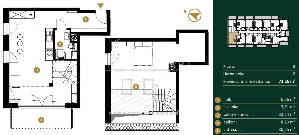 Przedmiotem oferty jest przestronny apartament o powierzchnia całkowitej 73,26 m2 wraz z antresolą.