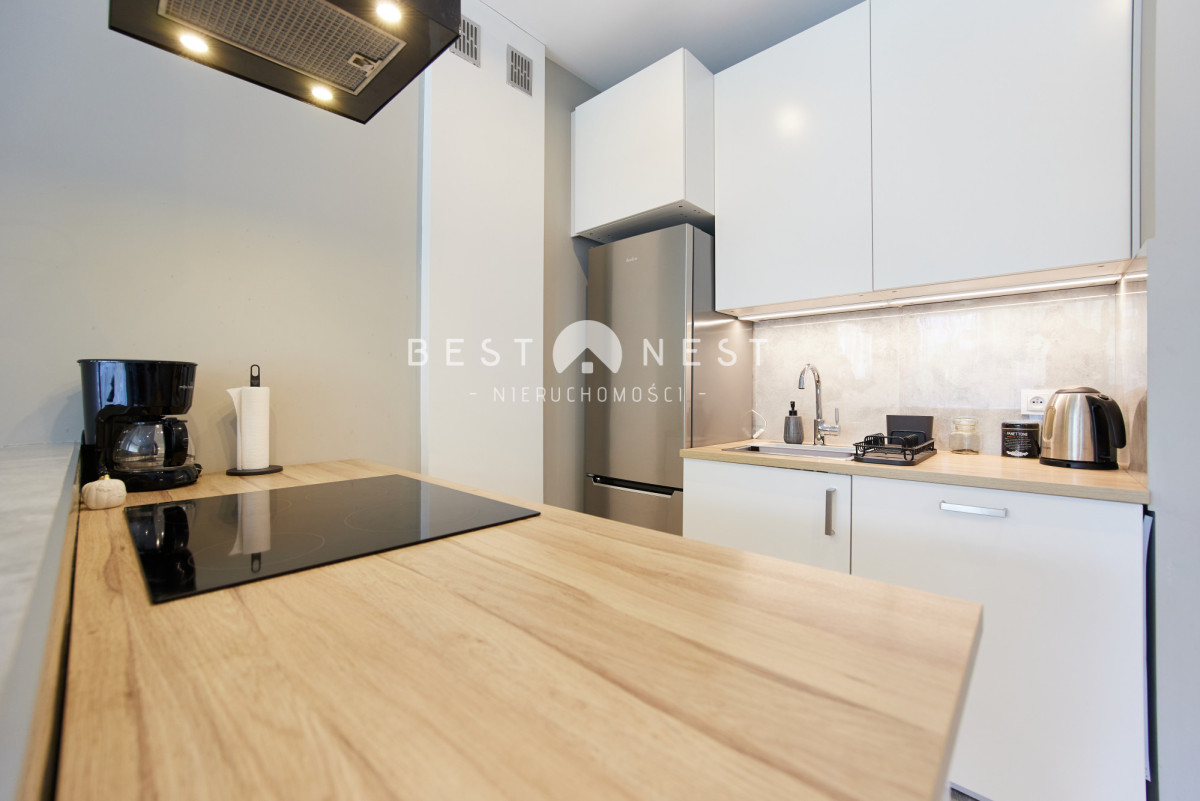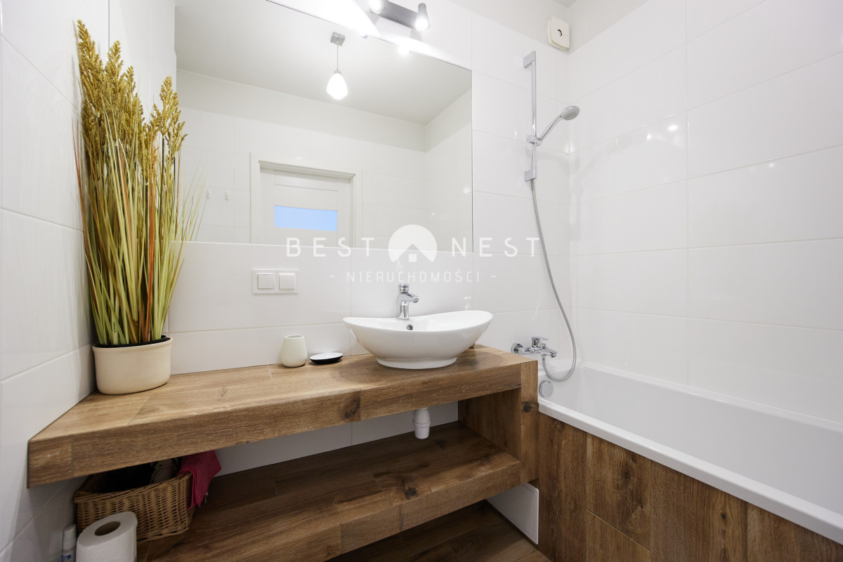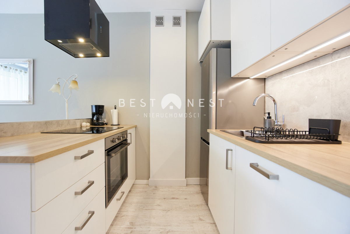 Nieruchomość w bardzo dobrym stanie technicznym, w pełni wyposażona. Kuchnia z AGD (zmywarka, piekarnik, płyta indukcyjna, lodówka). W łazience pralka.